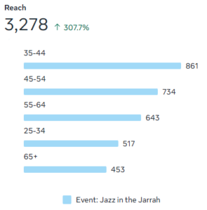 Despite direct competition from the Kristoffersson Cup and a concurrent live concert, Jazz in the Jarrah maintained its historical attendance average – a testament to our marketing efforts in a saturated weekend.