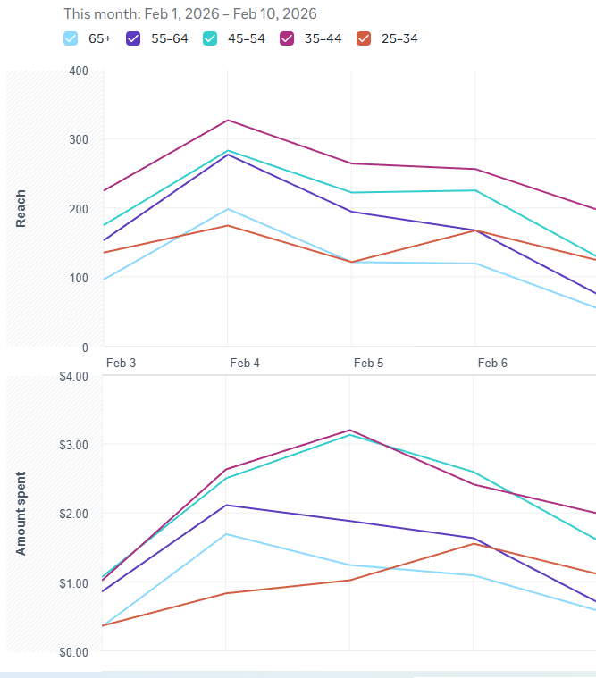 • Furthermore, over 50 high-intent users clicked through to the Manjimup Lions page to investigate the organisers, with the highest interest coming from the 65+ female and 45-54 male demographics. This could be used as the most interested demographic to target in future campaigns either seeking increased membership or donations.